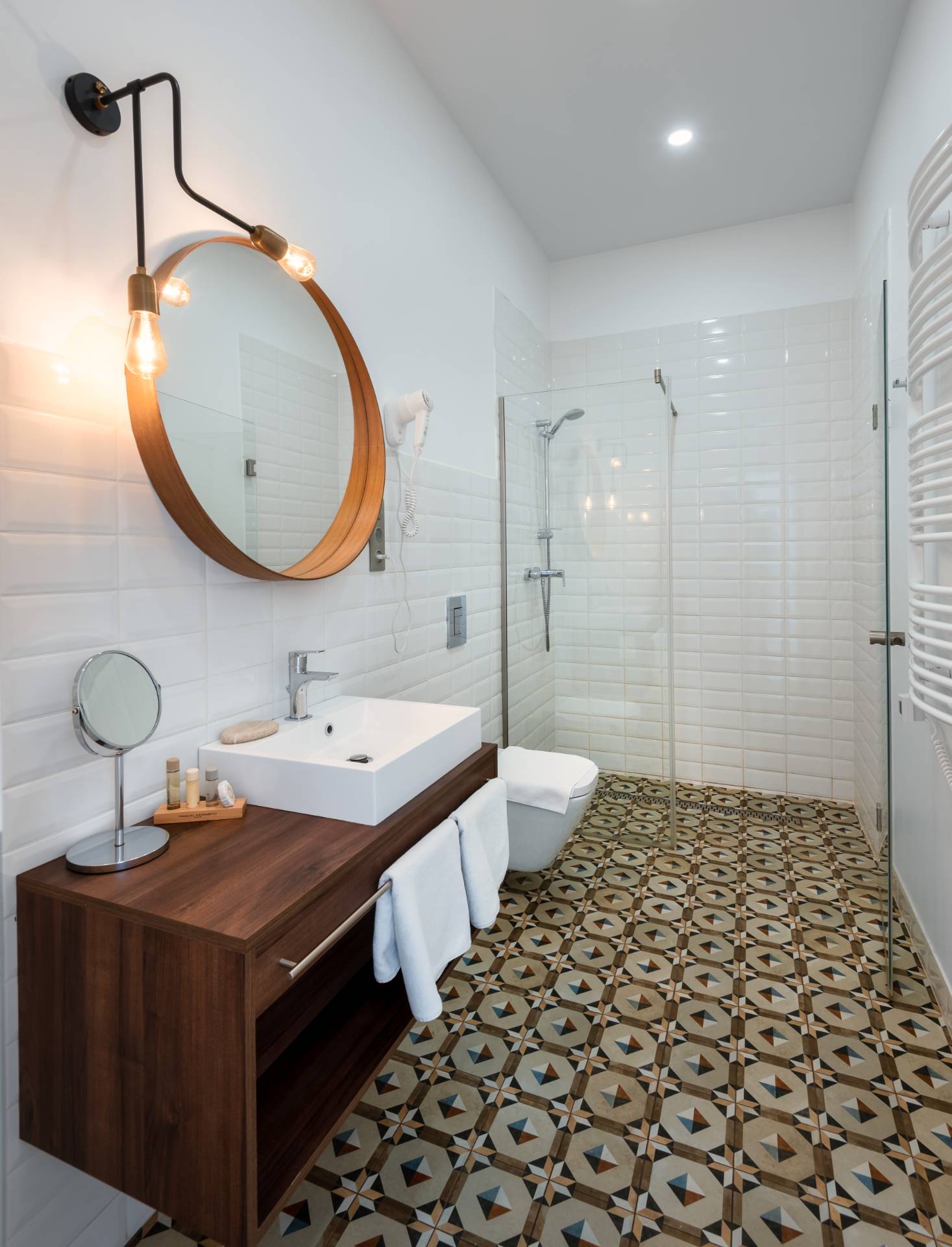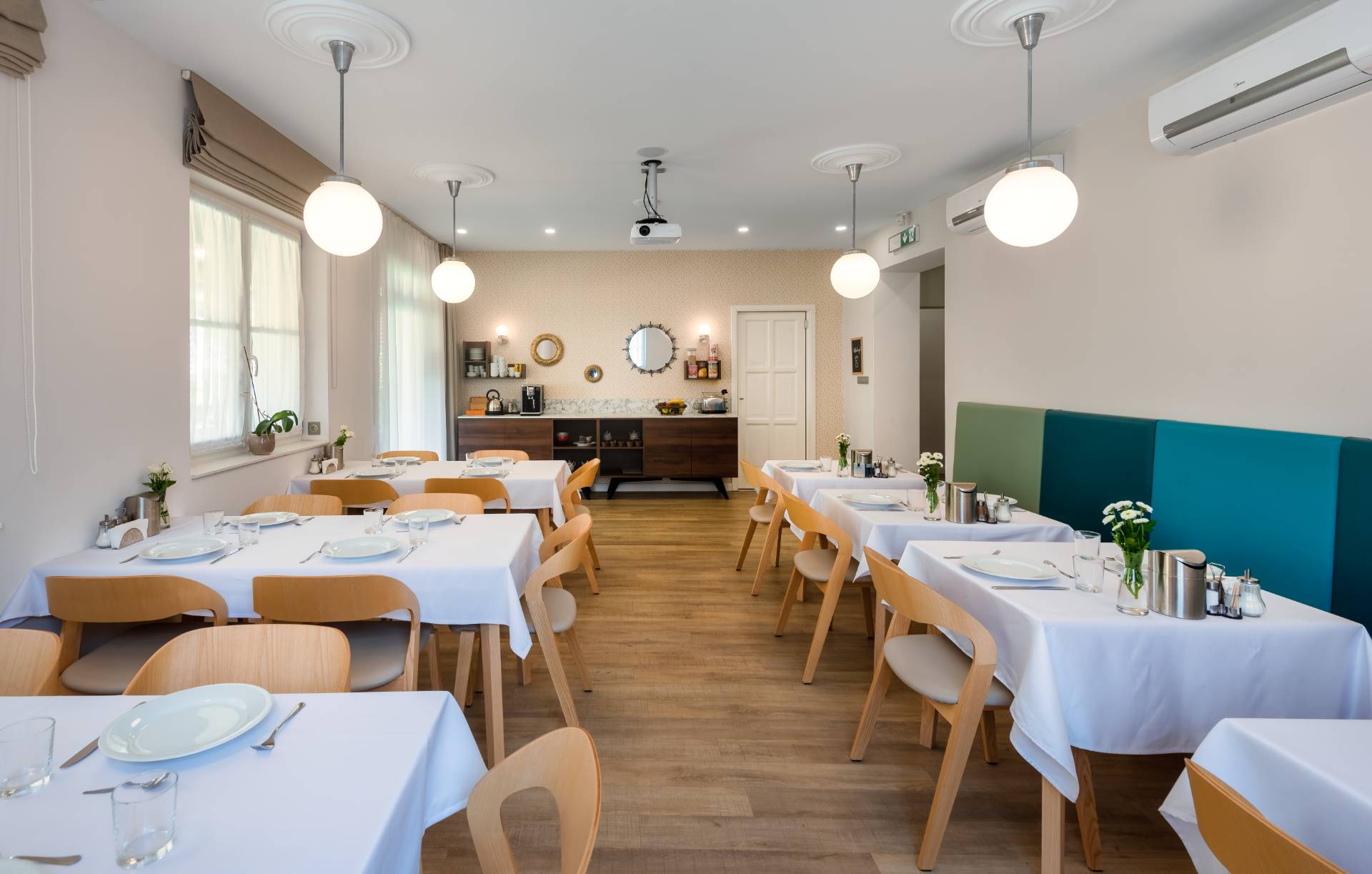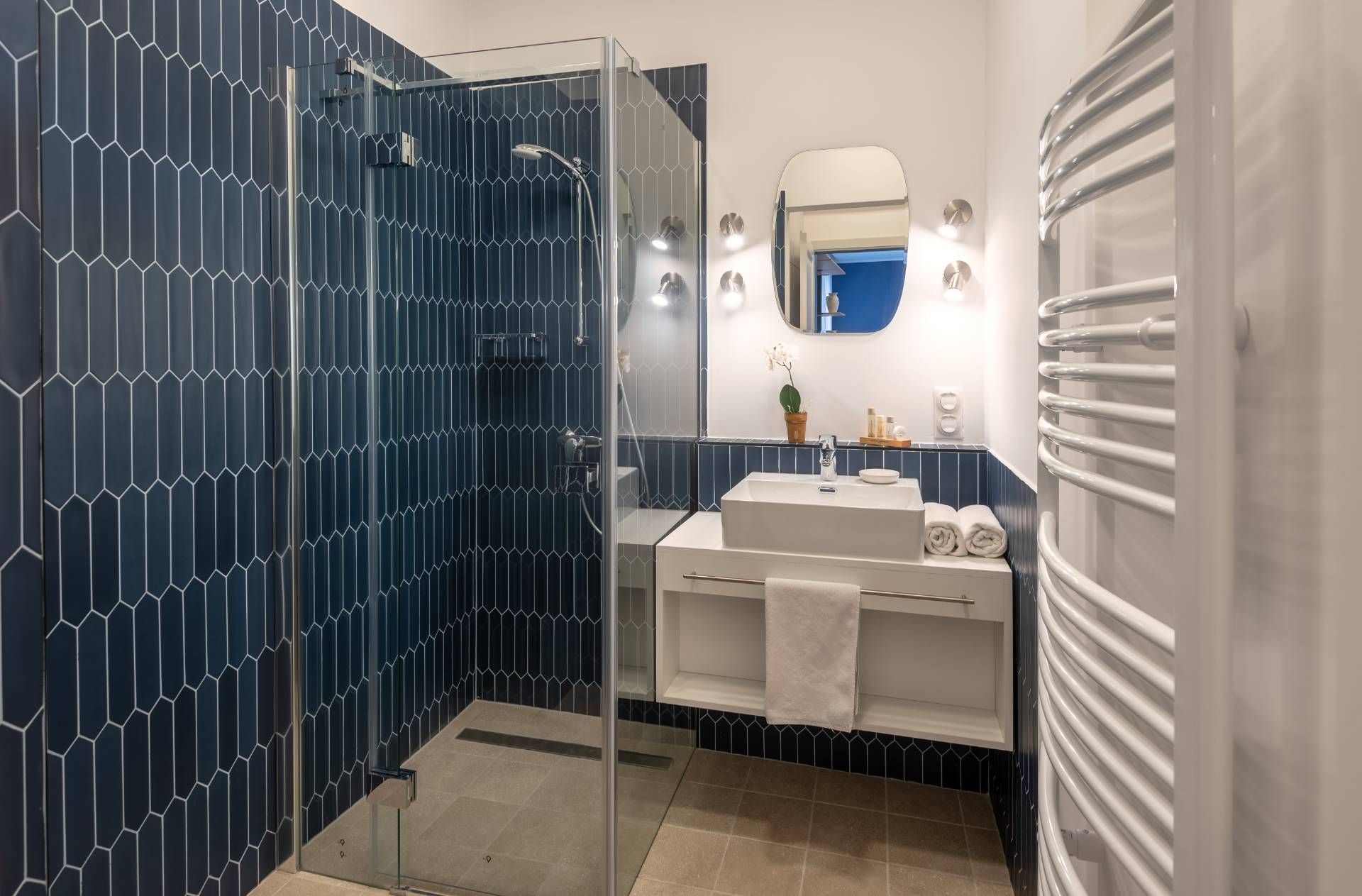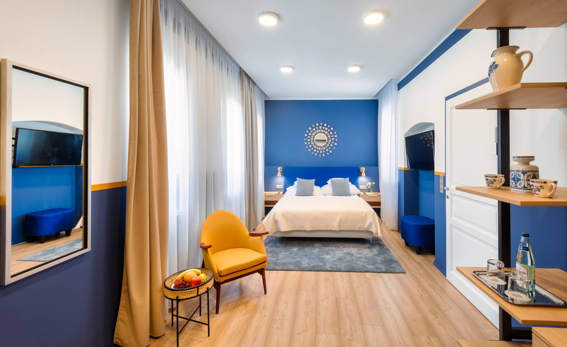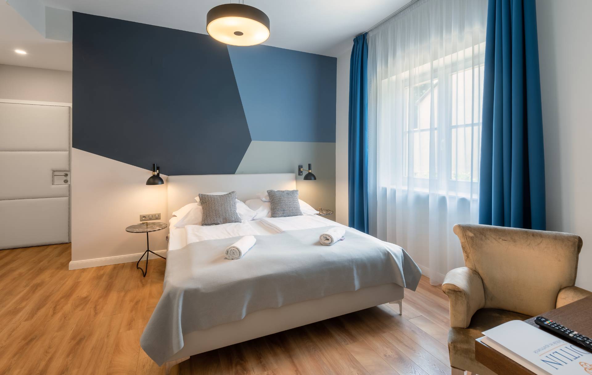 Kiemelt figyelmet kaptak a praktikus tárolórendszerek, tv-falak és a beépített konyhai megoldások, amelyek harmonizálnak a hotel egyedi színvilágával. A fürdőszobai lebegő mosdópultok és a precíz részletmegoldások garantálják a vendégek számára a prémium komfortélményt.
