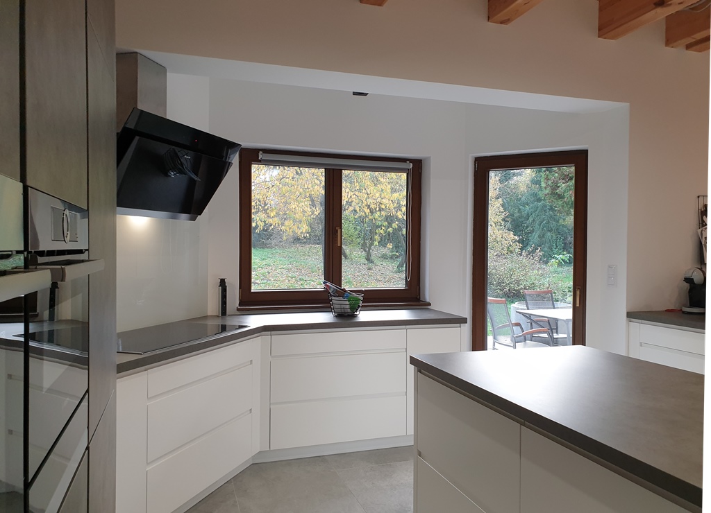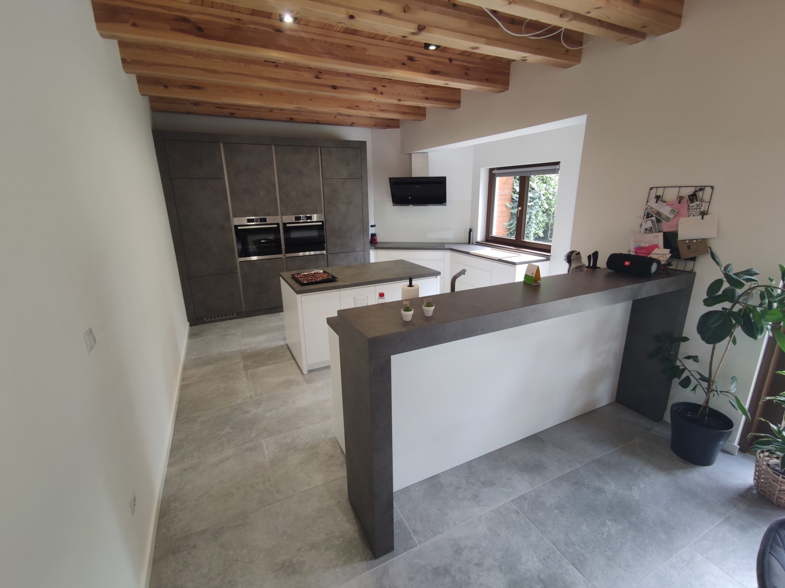 Ebben a projektben a SIHO Design a modern funkcionalitást hozta el a gerendaház falai közé. Munkánk gerincét a prémium konyhabútor adja, ahol a betonhatású frontok és a minimál fehér felületek találkoznak a legmodernebb konyhatechnológiával.